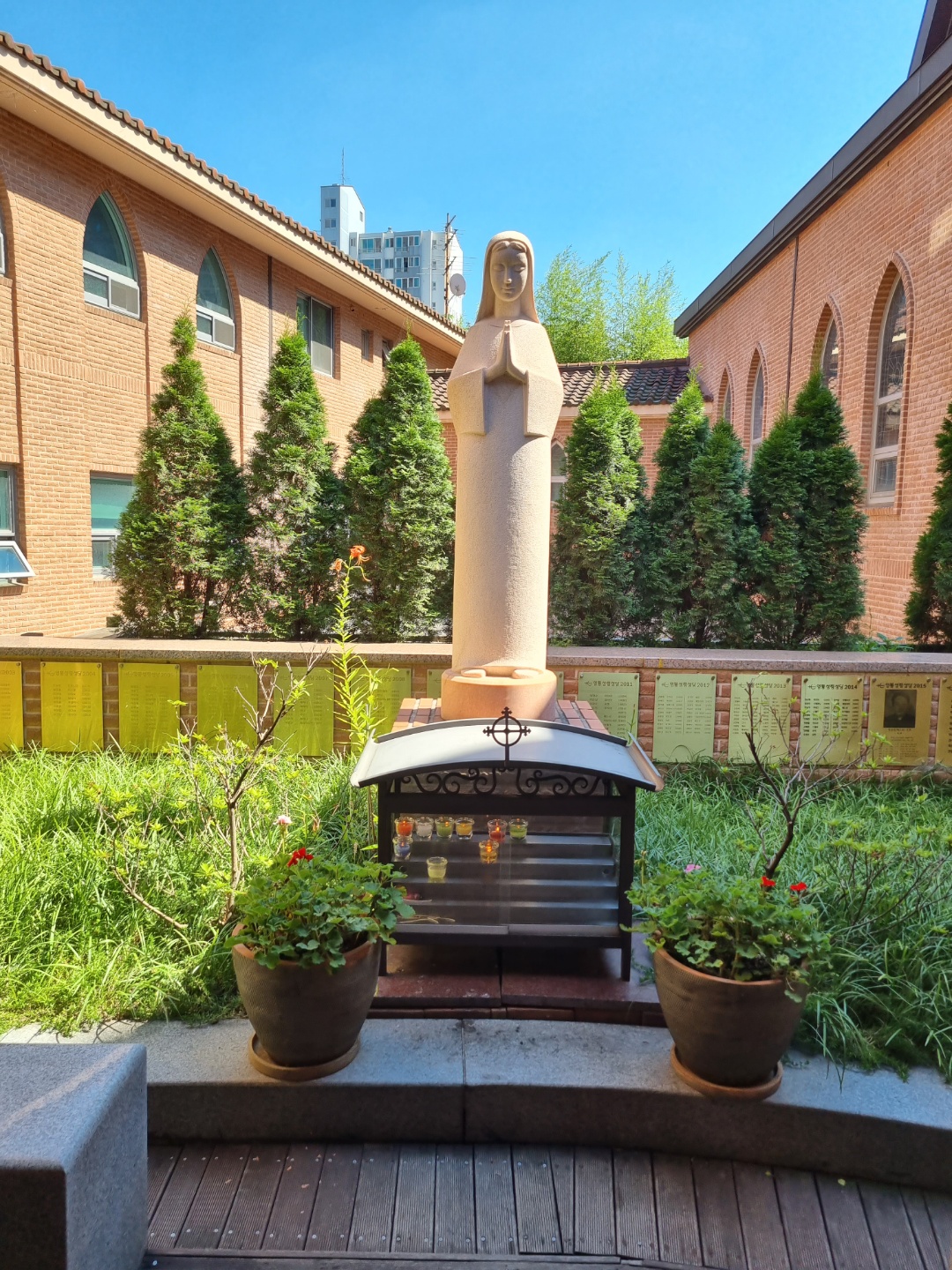 부친 이영재 로렌조 1주년 기일을 기념하려 본당 영통성령성당으로 연미사와 어머니 이 루치아를 위한 생미사를 신청하려 다녀왔습니다. 처음 너무 덥다시며 가시기를 힘들어 하시던 어머니를 비법^^을 사용하며 모시고 가 미사를 신청하고 어머니와 성모님 정원에서 기도를 드리고 왔습니다. 날은 무척 더웠지만 성모님상 앞에서 기도 드릴때 선선한 바람이 솔솔 불어와 기분이 좋았습니다. 어머니께서도 기분 좋아하셔서 마음이 놓였습니다.